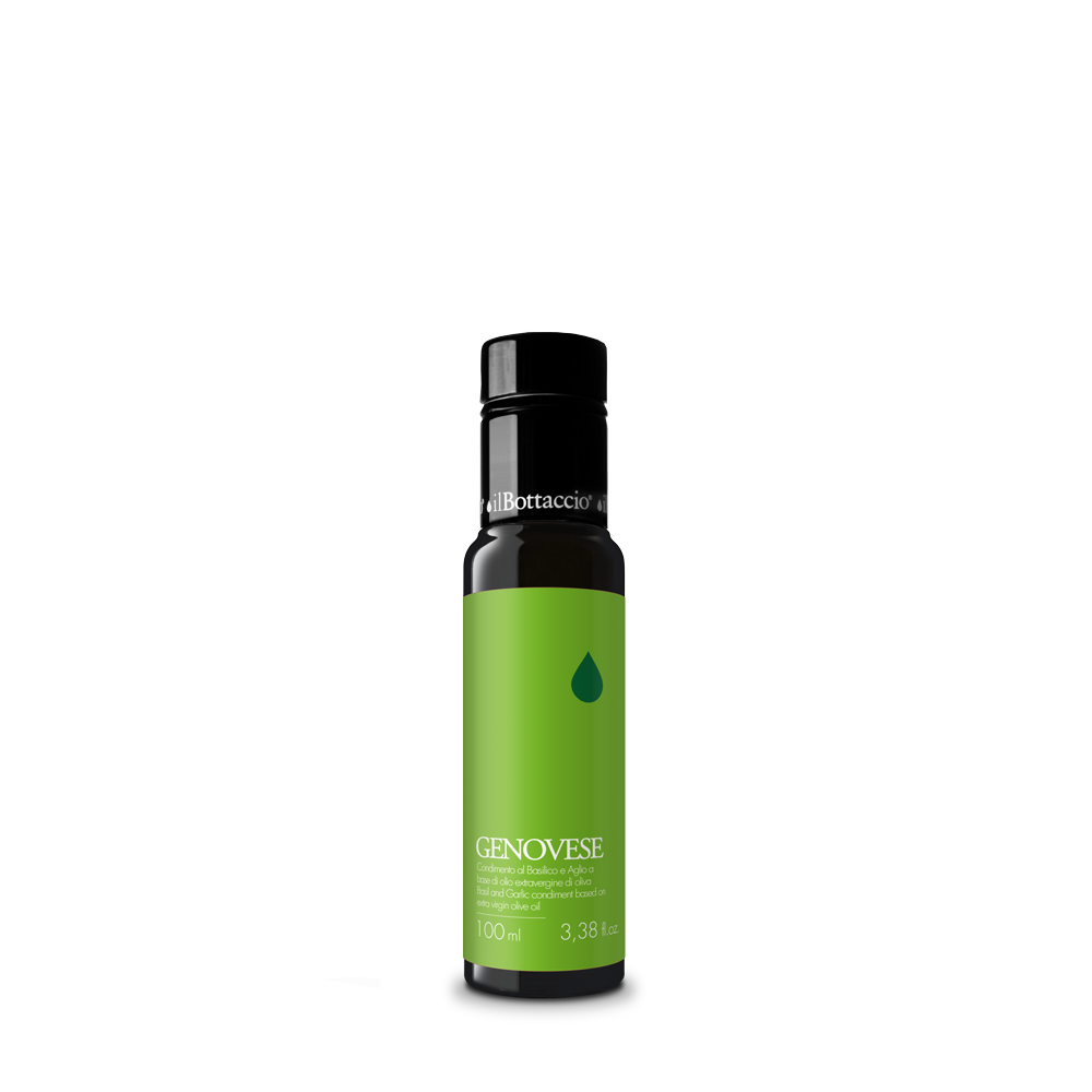 Condimento a base di olio extravergine di oliva, arricchito con Basilico e Aglio.