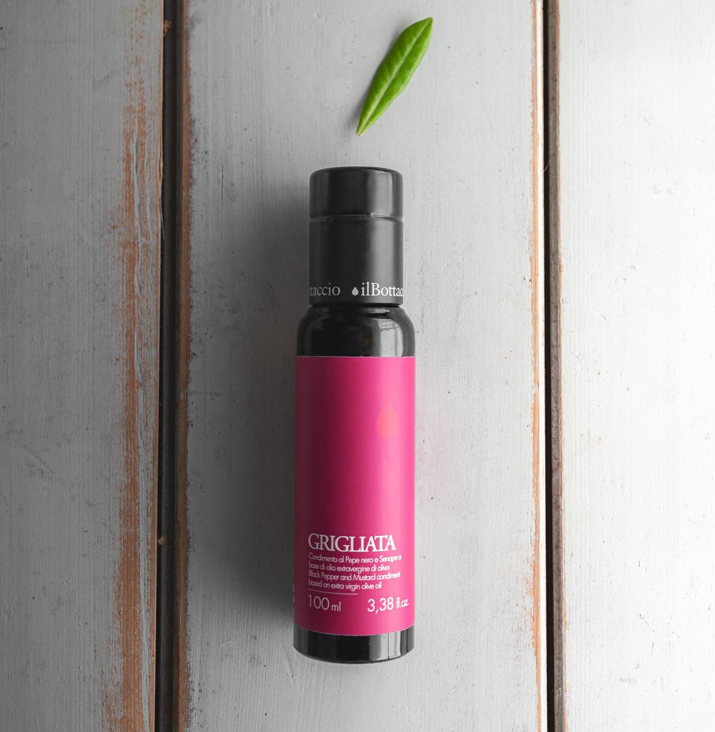 Condimento a base di olio extravergine di oliva, aromatizzato con senape e pepe nero.
