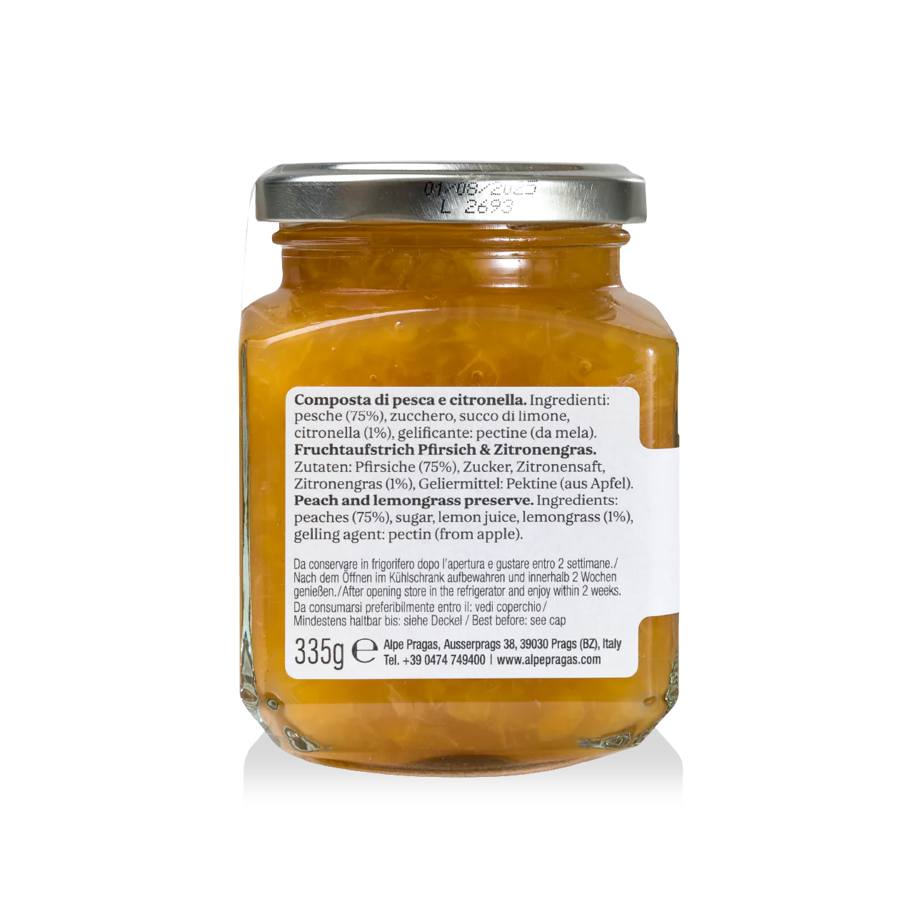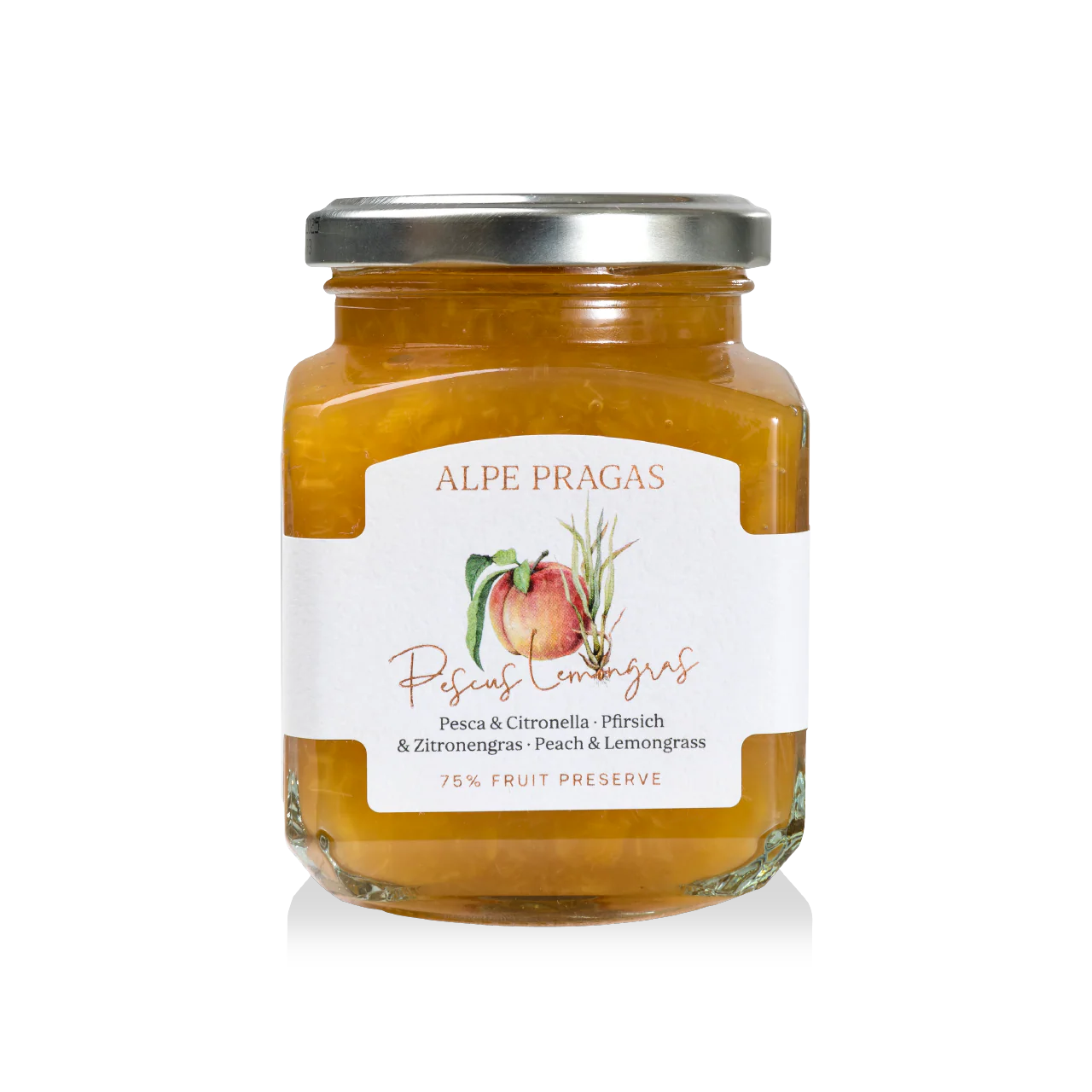 Un abbinamento sorprendente e raffinato: le pesche estive, succose e profumate, incontrano la freschezza agrumata della citronella in una composta dal gusto esotico e rinfrescante.