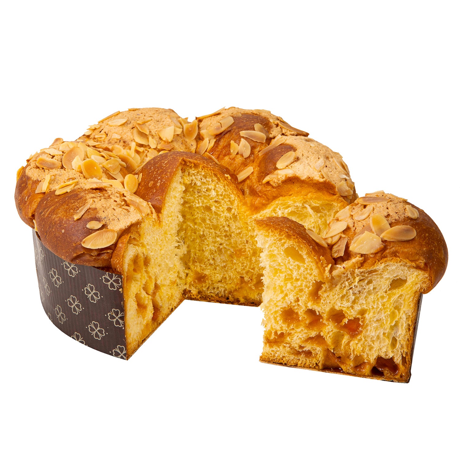 Sulla superficie, una dolce glassa alle mandorle e zucchero dona croccantezza e un tocco goloso, rendendolo anche un’ottima idea regalo grazie al suo raffinato packaging decorato.