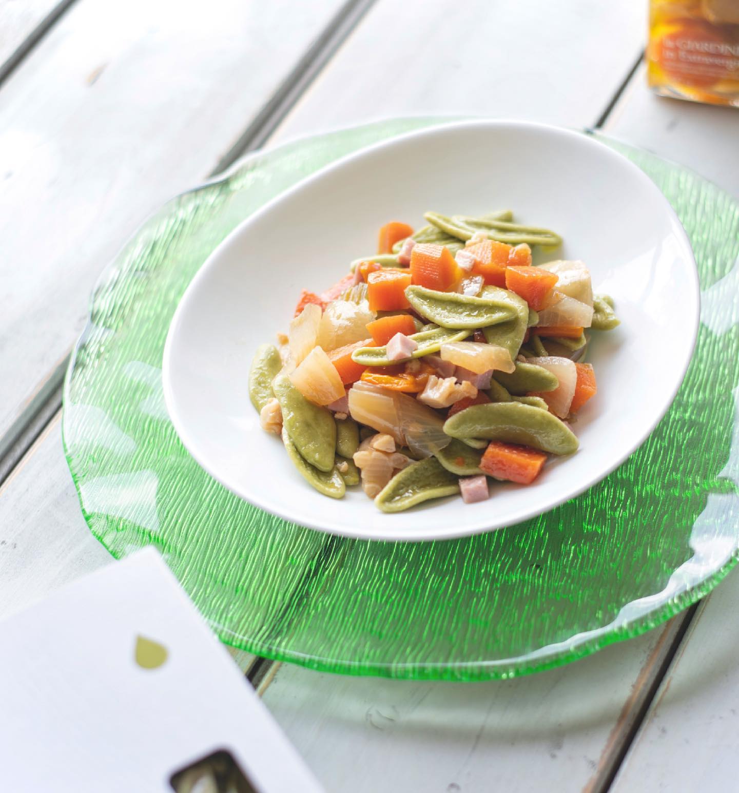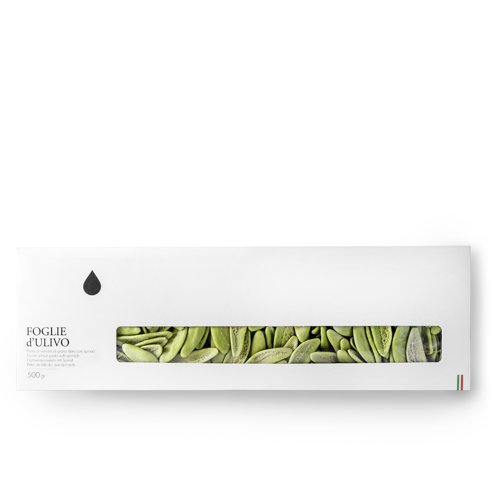 Pasta artigianale dalla forma ispirata alle foglie d’ulivo, bella da vedere e perfetta per raccogliere il condimento.