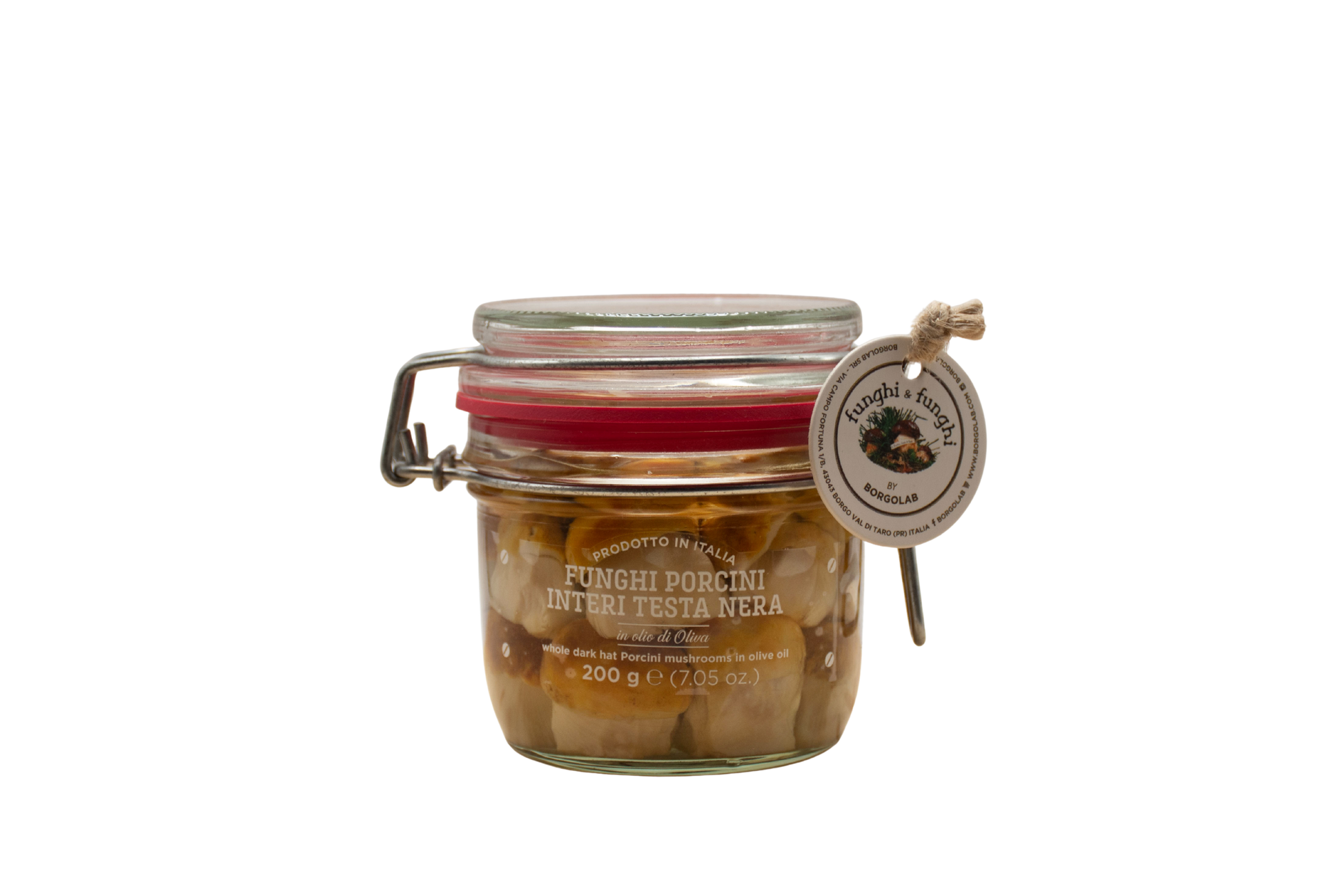 Prodotto artigianale confezionato a mano. I porcini testa nera sono tra i più rari e ricercati: il loro periodo di raccolta è breve e limitato. Vengono selezionati con estrema cura, puliti, lavati, cotti e lasciati in concia con aromi naturali per alcuni giorni.