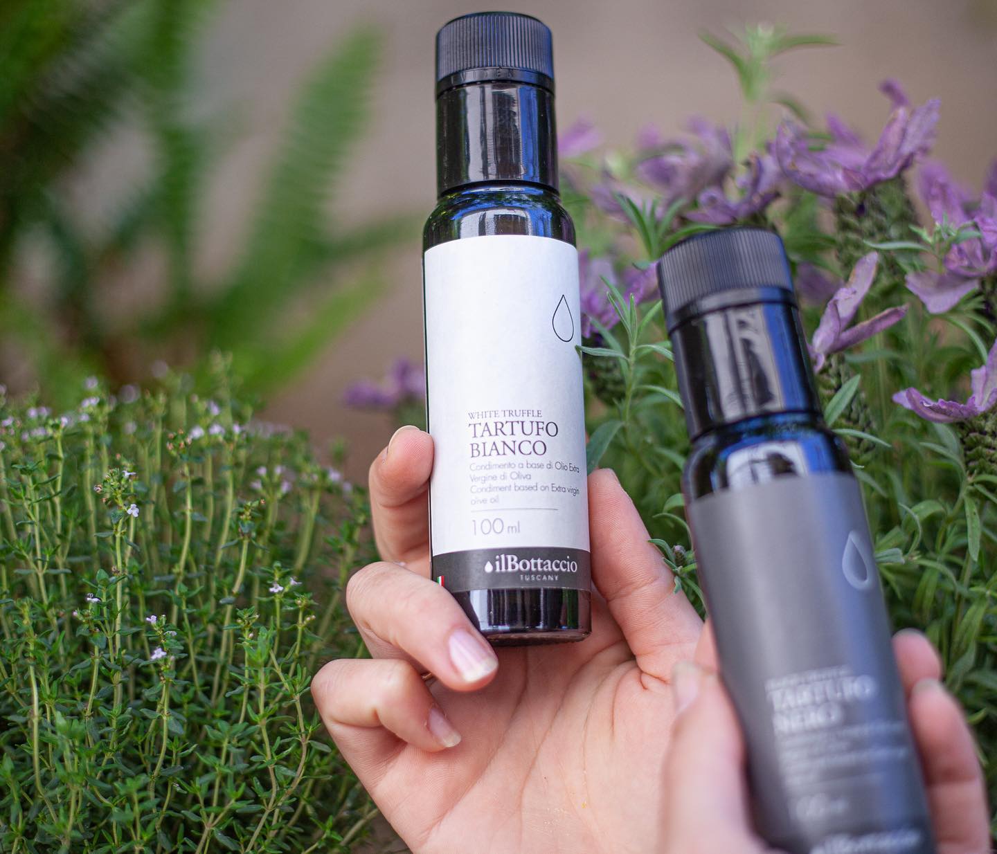 Condimento a base di olio extravergine di oliva toscano, impreziosito da aroma naturale di tartufo nero pregiato.